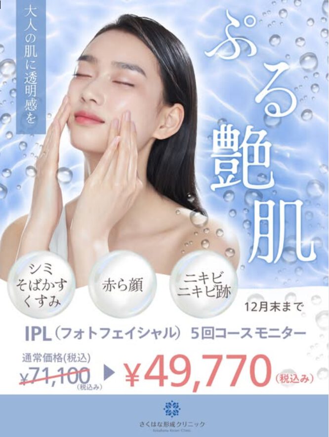 医療脱毛・美肌治療(ピーリング・内服)・IPL・注入治療(にんにく注射やプラセンタ注射)などの自由診療。