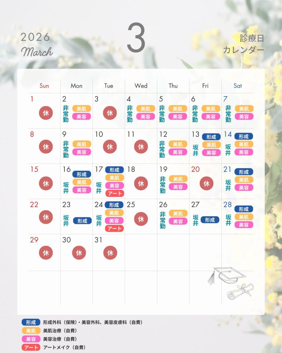 目元の手術・傷跡修正などの美容外科(自費)、ミラドライ・炭酸ガスレーザー・ルビーレーザーなどの美容医療(自費)も施術します。