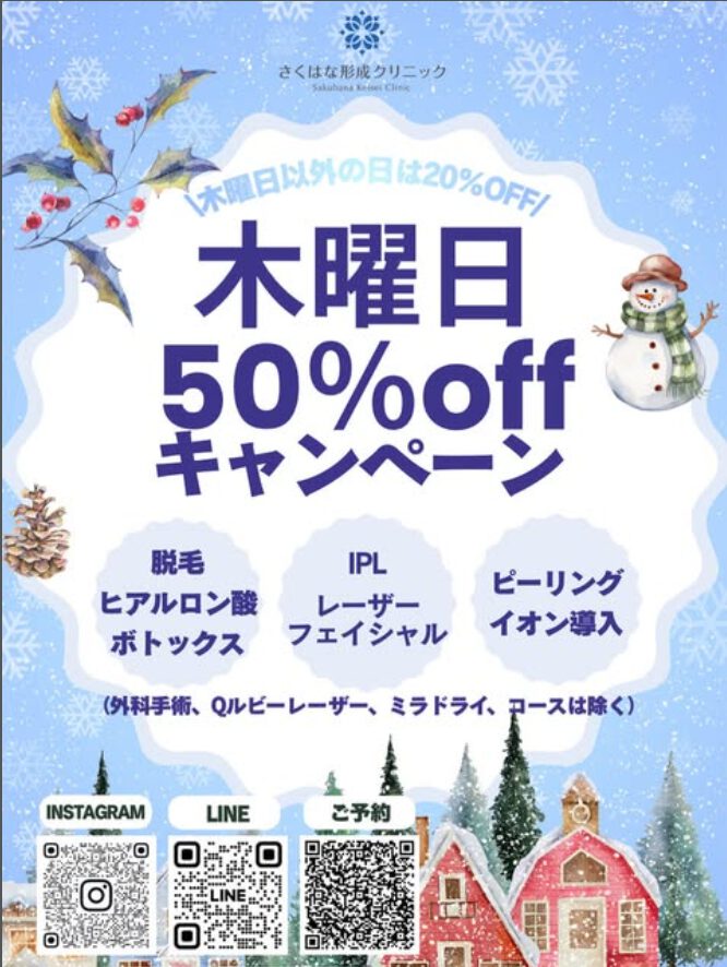 上記の美肌美肌治療+ヒアルロン酸・ボトックス・ニキビ跡治療。